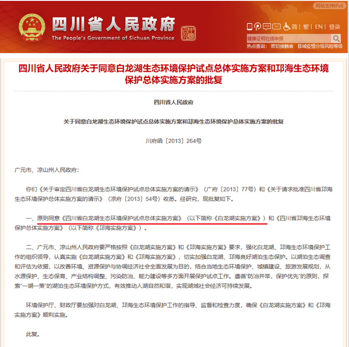 項目名稱:四川省廣元市白龍湖生態環境保護總體實施方案